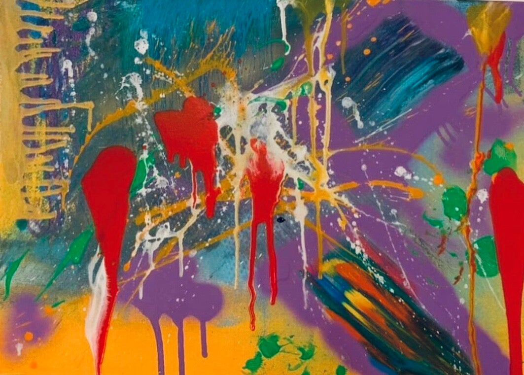 Ein ausdruckstarkes abstraktes Kunstwerk voller Energie, Dynamik und leuchtender Kontraste. "Farbgewitter" vereint kräftige Rotakzente, verspielte Tropfen und frei fließende Bewegungen zu einer intensiven, modernen Bildstruktur. Ideal als Blickfang für Wohnzimmer, Büro oder kreative Räume. Einfach ein besonderes Unikat.